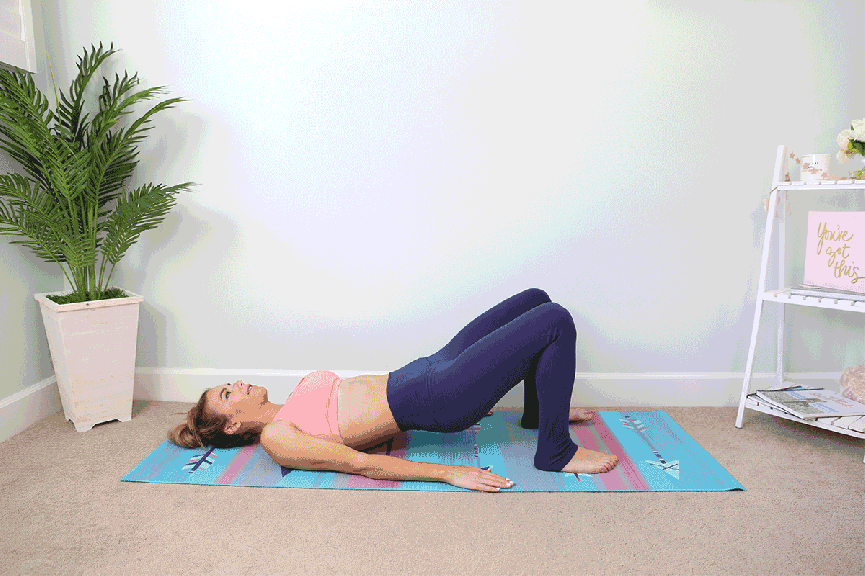 Cách thực hiện: Nằm ngửa trên sàn, 2 tay thả lỏng để xuôi theo thân người, lòng bàn tay úp xuống sàn. 2 chân chống vuông góc lên sàn, dồn lực vào bàn tay và bàn chân để nâng hông lên cao, kéo căng lưng và cổ. Giữ nguyên tư thế khoảng 30 giây sau đó thoát khỏi tư thế bằng cách từ từ nằm xuống, thở ra và lặp lại 4-5 lần.